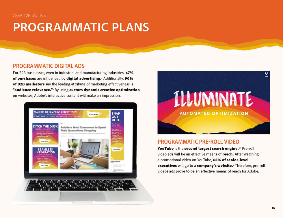 As a designer for the 2020 UNL National Student Advertising Competition team, I helped create a campaign for the Adobe Experience Cloud for Advertising. As a B2B campaign, we found the target unaware that a product like this existed. Adobe’s integrated platform has a high return on investment and creative optimization to maximize their adtech.